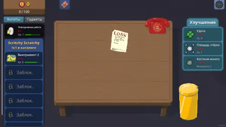 Здесь всё крутится вокруг простого удовольствия. Берёте рандомную скретч-карту, стираете непрозрачное покрытие на ней и надеетесь, что сейчас повезёт. Но игра быстро выходит за рамки обычных лотерей. Вас ждёт куча разных карточек с сюрпризами, бонусами и, иногда, неприятными подставами. Если грамотно комбинировать улучшениями, можно сорвать большой куш или потерять всё за одно неудачное решение. Постепенно вы будете открывать новые возможности, ускорять процесс и даже получите помощника, который стирает билеты за вас.
